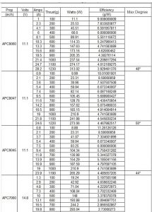 ¿Cómo saber la información exacta del motor?La mejor forma de obtener los datos como: Empuje, hélices compatibles, voltaje máximo, amperaje máximo consumido, etc. es obtener estos datos del fabricante, muchos fabricantes de estos motores incluyen una tabla con información de resultados de pruebas que se le hace al motor, indicando todas las configuraciones y datos como hélice usada, voltaje, incluso eficiencia y temperatura alcanzada por el motor, en esta tabla se encuentran varias configuraciones con diferentes resultados, estos datos son valiosos para saber que hélice usar, batería, y ESC, también sabes el empuje que puedes esperar del motor. En las imágenes de abajo se muestran ejemplos de como lucen estas tablas.