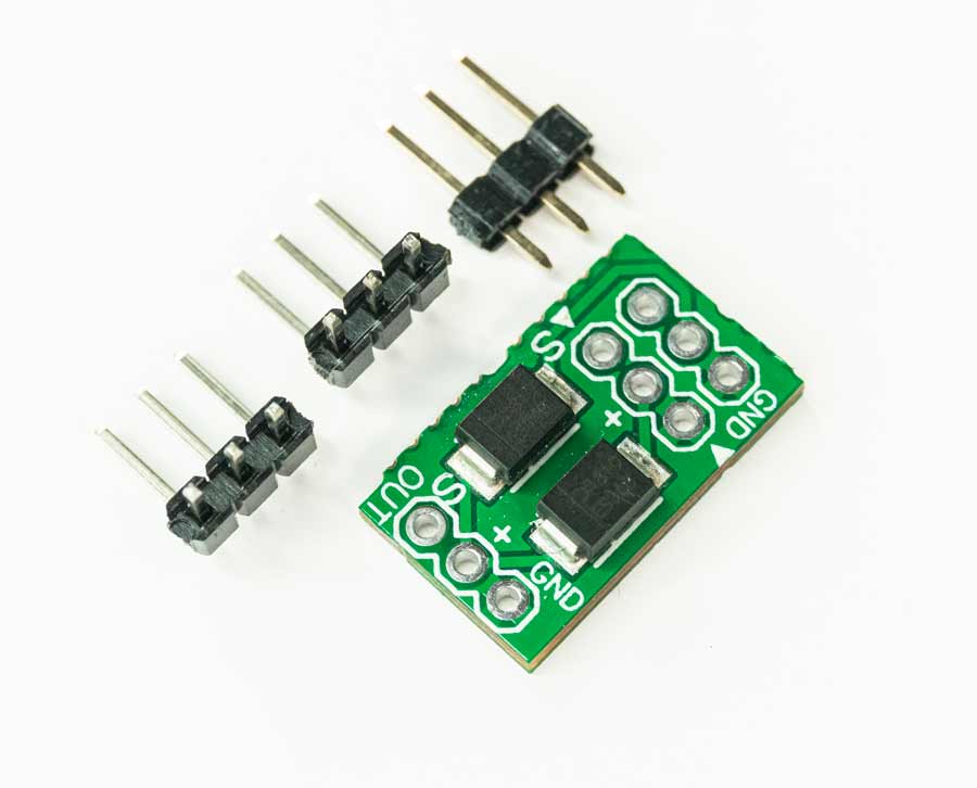 La entrada de voltaje puede ser de hasta 50 V, pero cada diodo puede soportar hasta 3 A, el uso normal será de 5 V y 1 A. Cuando las dos entradas están conectadas, la corriente se dividirá entre los dos diodos, si uno deja de funcionar, el otro seguirá suministrando corriente y el consumo total de corriente fluirá a través de un diodo.